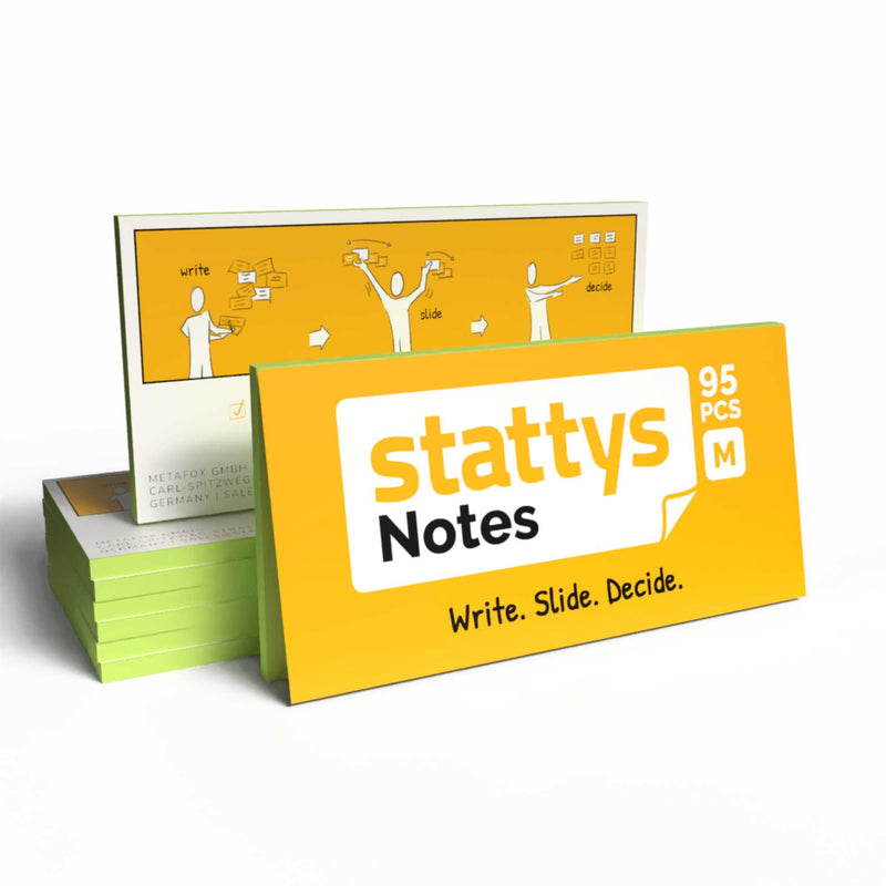 Bring deine Workshops und Trainings aufs nächste Level – mit deinen personalisierten elektrostatischen Notizzetteln. Diese individuellen Stattys Notes zeigen dein Branding, Logo und deine Botschaft – und machen jede Brainstorming-Session zu einem professionellen und bleibenden Erlebnis.